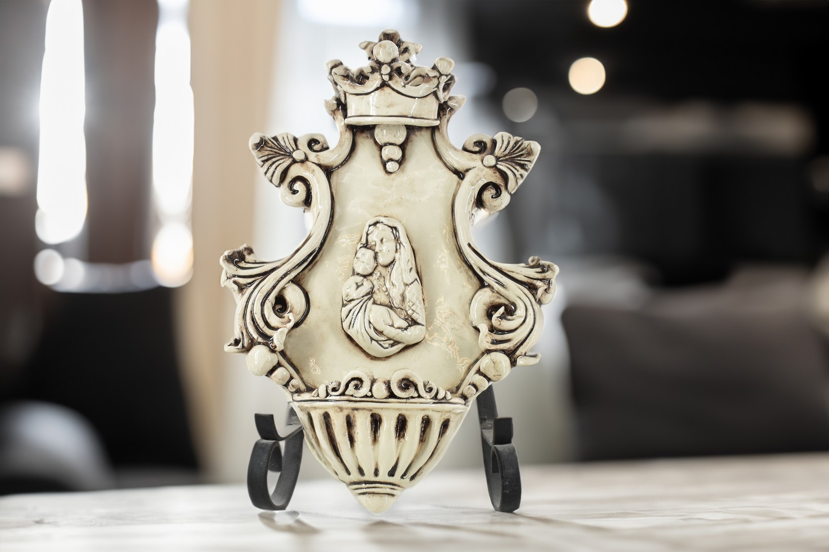 Acquasantiera media appl 19×30 madonna in rilievo madreperla antichizzato
