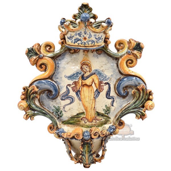 Acquasantiera grande appl 25×35 angelo in piedi tricolore