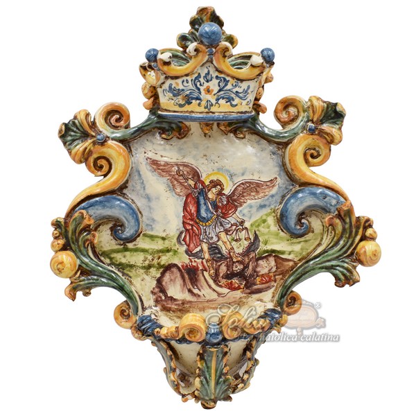 Acquasantiera grande appl 25×35 San Michele Arcangelo tricolore