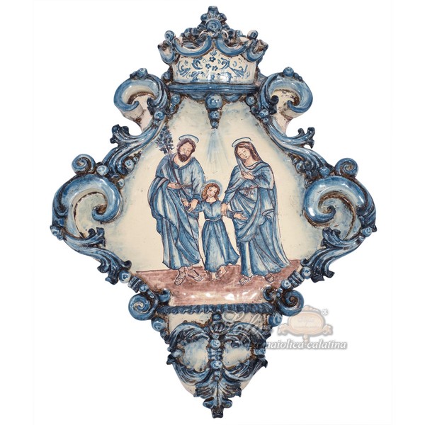 Acquasantiera maxi appl triangolare 35×45 sacra famiglia mono blu