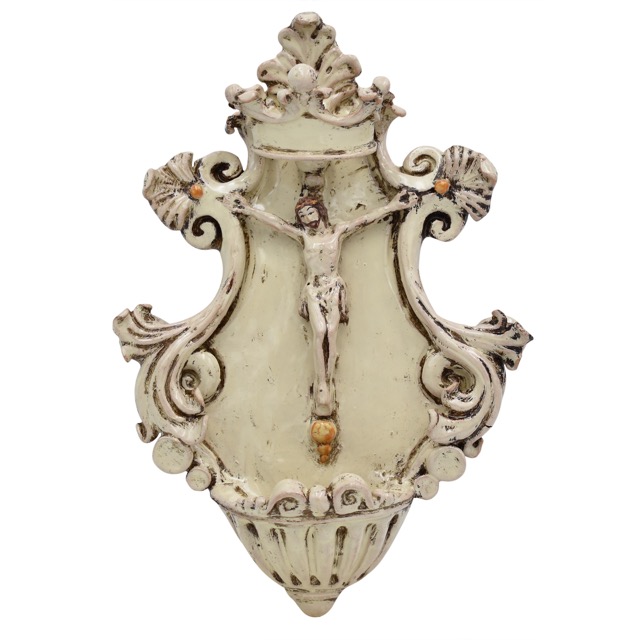 Acquasantiera media appl 19×30 cristo in rilievo avorio