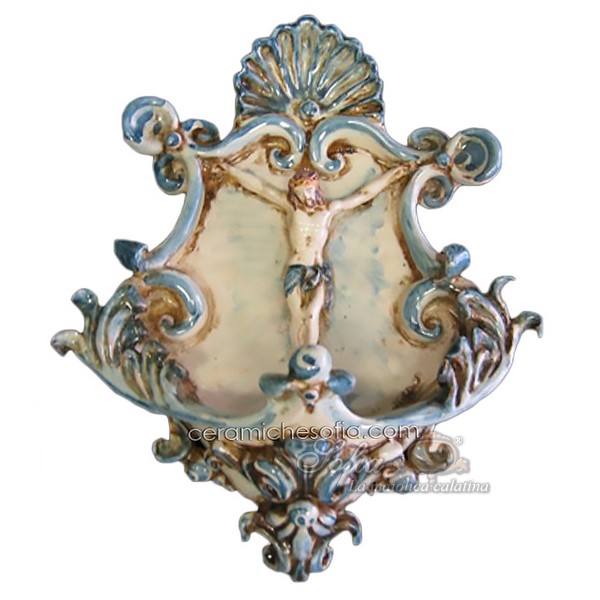 Acquasantiera media appl 19×30 cristo in rilievo mono blu