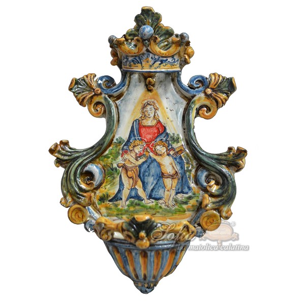 Acquasantiera media appl 19×30 madonna del cardellino tricolore