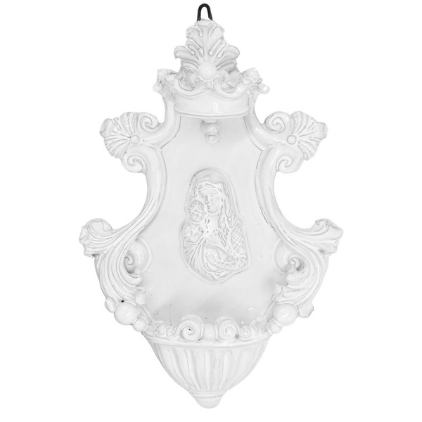 Acquasantiera media appl 19×30 madonna in rilievo white line