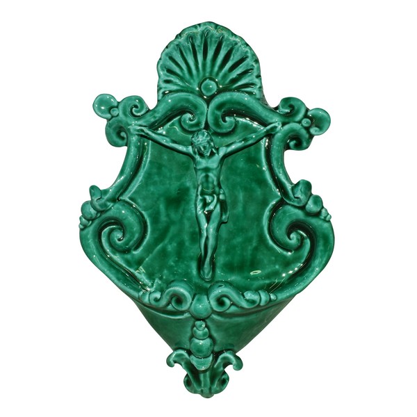 Acquasantiera piccola appl 15×25 cristo in rilievo verde smeraldo