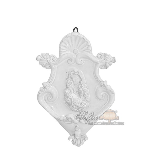 Acquasantiera piccola appl 15×25 madonna in rilievo white line
