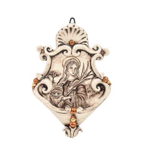 Acquasantiera piccola appl 15×25 santa Lucia madreperla antichizzato oro e lustri