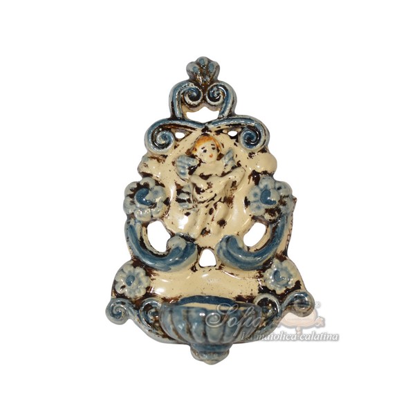 Acquasantiera traforata h 11 angelo c/chitarra mono blu – Bomboniera