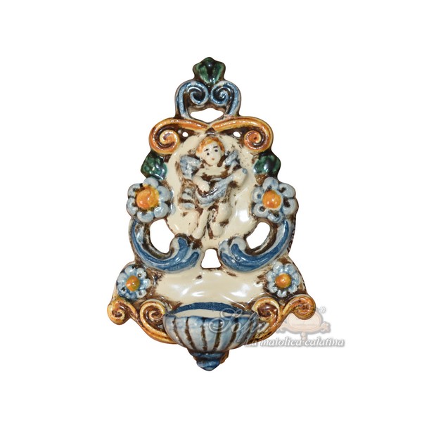 Acquasantiera traforata h 11 angelo c/chitarra tricolore – Bomboniera