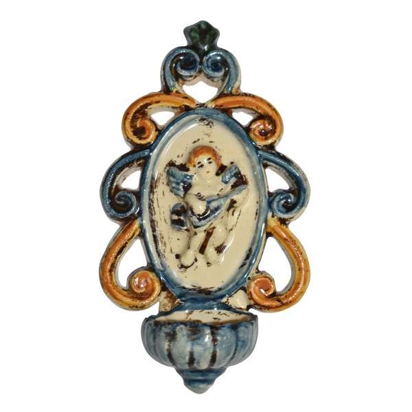 Acquasantiera traforata h 11 angioletto c/chitarra tricolore – Bomboniera