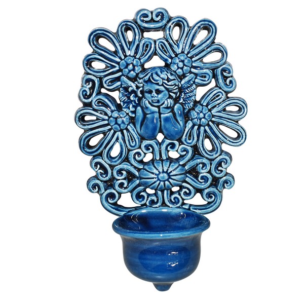 Acquasantiera traforata h 17 angioletto blu intenso – Bomboniera