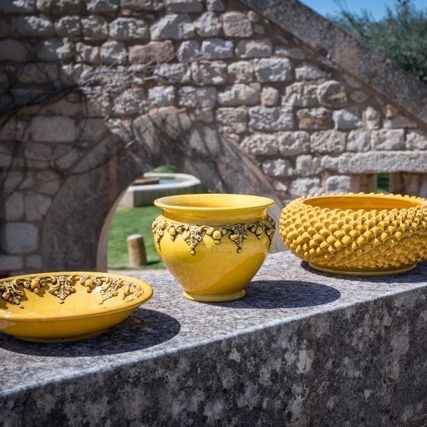I nostri prodotti vengono realizzati interamente a mano ed eventuali imperfezioni denotano l'originalità dell'opera. La creazione delle nostre ceramiche è un processo molto laborioso che segue diverse fasi; tra queste la modellazione, la prima cottura, la decorazione la seconda cottura e l'invecchiamento. La caratteristica principale di acquistare un prodotto non industriale è proprio questa: possedere un prodotto unico.