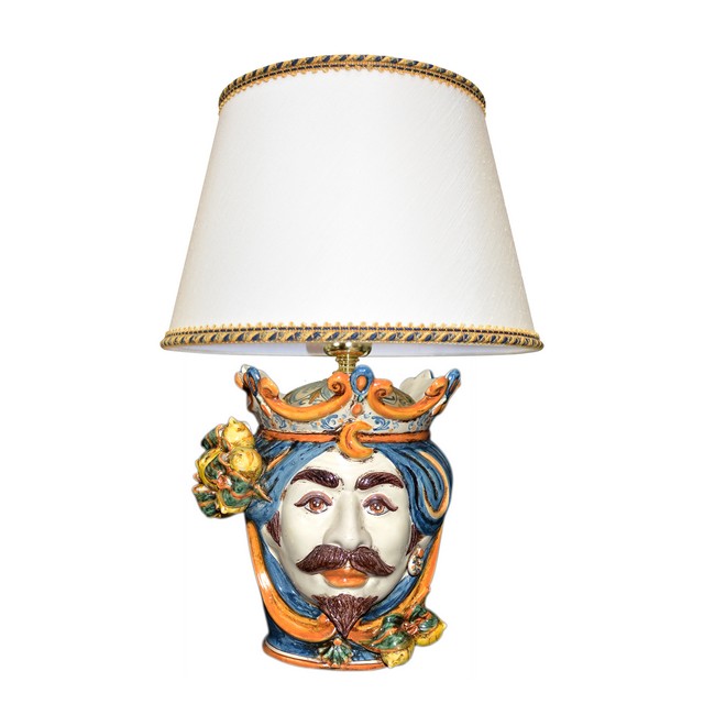 Lume a testa h 25 limoni blu/arancio maschio bianco (h55 c/paralume Ø35)