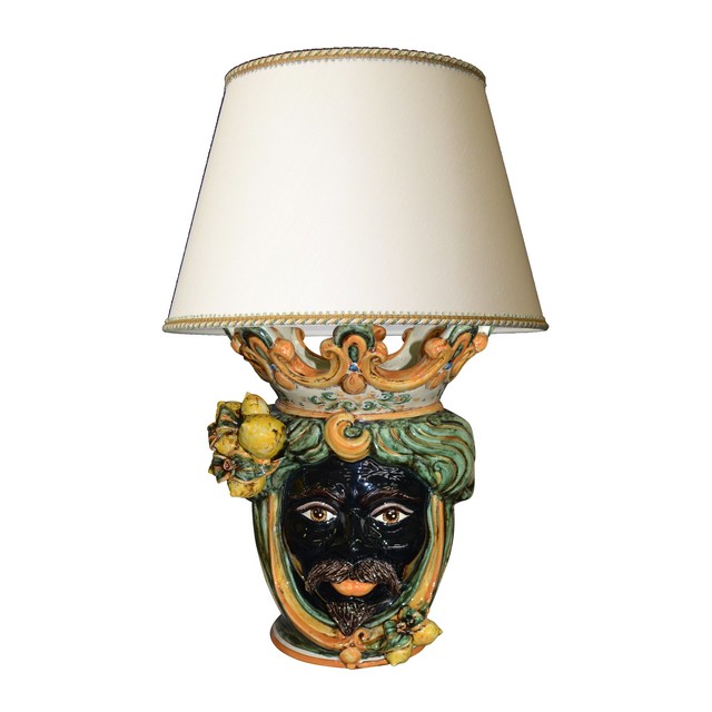 Lume a testa h 40 limoni verde/arancio maschio moro (h70 c/paralume Ø45)