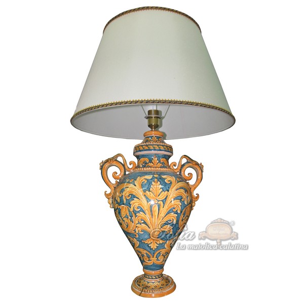 Lume maxi h 50 liscio ornato fondo blu (h83 c/paralume Ø50)