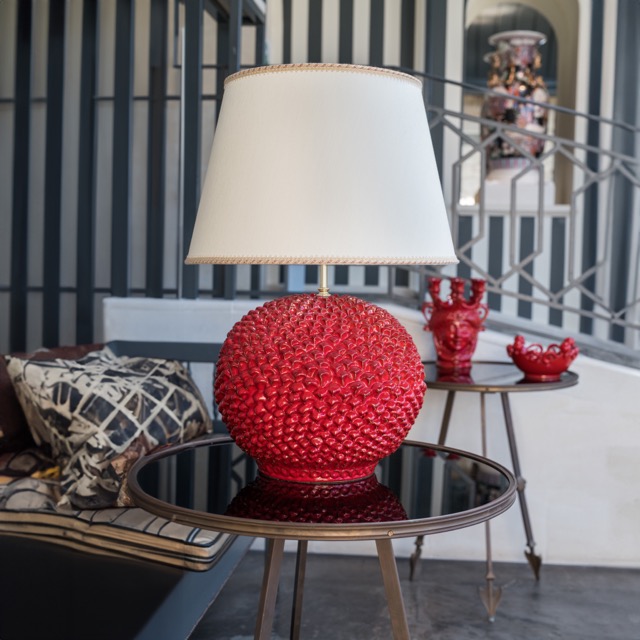 Lume palla a pigna h 20 rosso fuoco (h43 c/paralume Ø35)