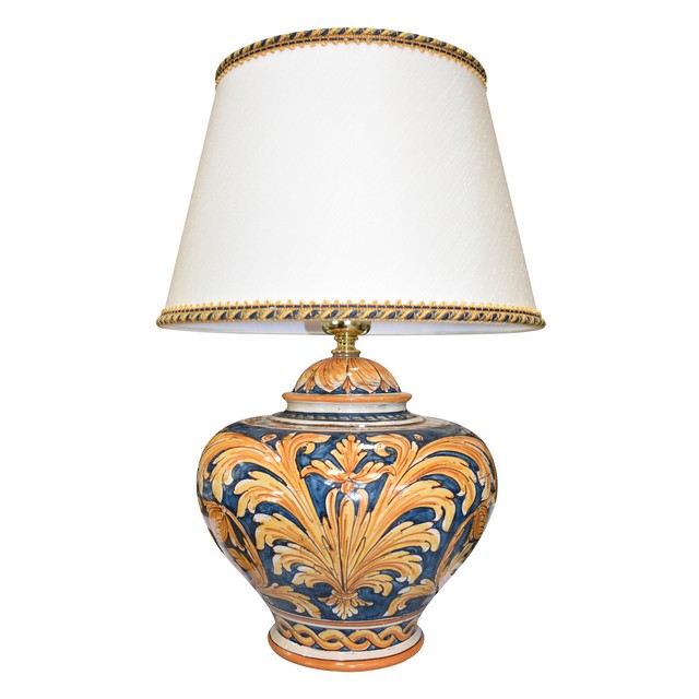 Lume palla h 25 ornato fondo blu (h52 c/paralume Ø35)