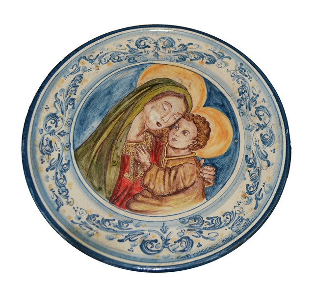 Piatto Ø 40 c/madonna maria s. d’arte blu/arancio