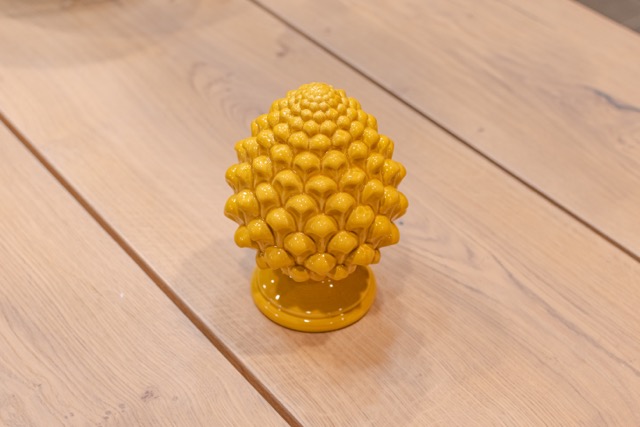 La tradizione popolare Siciliana ritiene che sia utile regalare delle pigne da appendere sopra la porta di casa come augurio di salute e buona fortuna alle famiglia che vi abita. Ma la Pigna la troviamo anche su balconi e cancelli di ingresso di antiche ville e giardini nobiliari, cimiteri monumentali, facciate di chiese e conventi, fino a popolare i troni di re e pontefici come materializzazione dell’anima, il ponte che unisce il terreno al divino. Questi significati si materializzano tra le mani di abili artigiani della ceramica che realizzano pigne di grandi e piccole dimensioni. Oggi le Pigne Artistiche, usate come bomboniere, regalo di nozze, complementi di arredo per interni ed esterni o come come base lampada, restano un modo esclusivo di esprimere un profondo augurio di benessere.