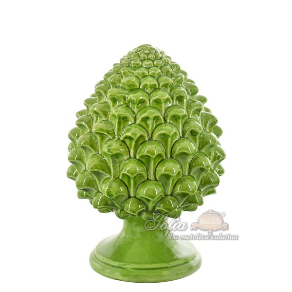 La tradizione popolare Siciliana ritiene che sia utile regalare delle pigne da appendere sopra la porta di casa come augurio di salute e buona fortuna alle famiglia che vi abita. Ma la Pigna la troviamo anche su balconi e cancelli di ingresso di antiche ville e giardini nobiliari, cimiteri monumentali, facciate di chiese e conventi, fino a popolare i troni di re e pontefici come materializzazione dell’anima, il ponte che unisce il terreno al divino. Questi significati si materializzano tra le mani di abili artigiani della ceramica che realizzano pigne di grandi e piccole dimensioni. Oggi le Pigne Artistiche, usate come bomboniere, regalo di nozze, complementi di arredo per interni ed esterni o come come base lampada, restano un modo esclusivo di esprimere un profondo augurio di benessere.