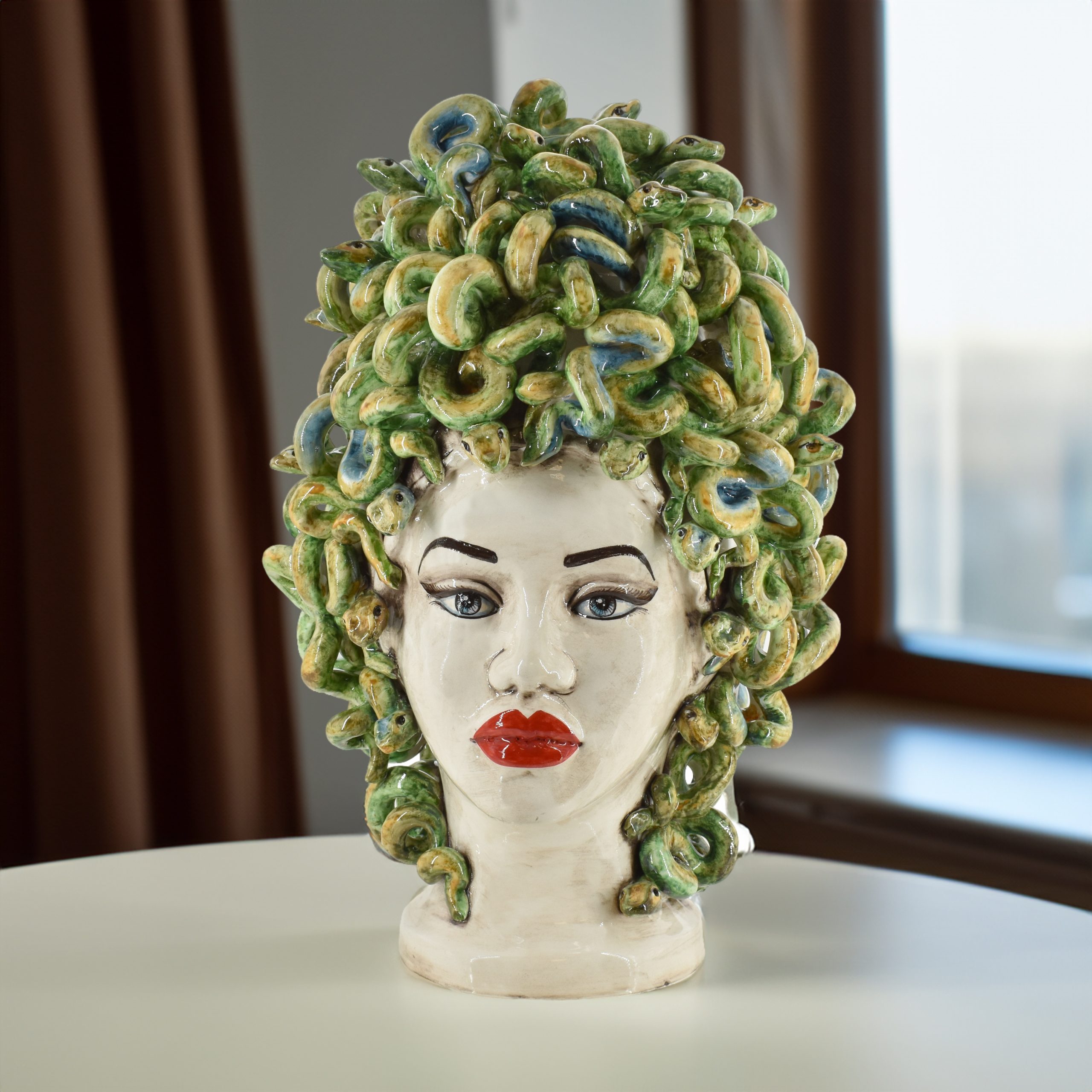 Testa h 45 medusa ricca madreperla colorato c/espressione labbra rosse