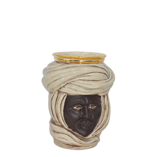 Testa h 20 tuareg corona liscia madreperla antichizzato oro e lustri maschio moro viso opaco