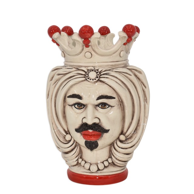 Testa h 25 turbante madreperla antichizzato c/perline rosse c/espressione maschio