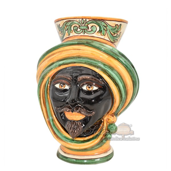 Testa h 30 corona liscia c/ornato verde/arancio maschio moro