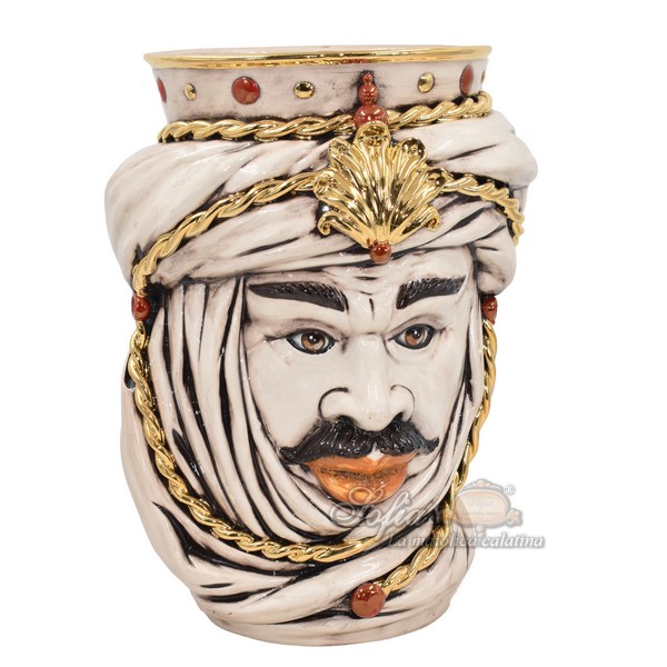 Testa h 40 tuareg corona liscia madreperla antichizzato oro e lustri maschio bianco
