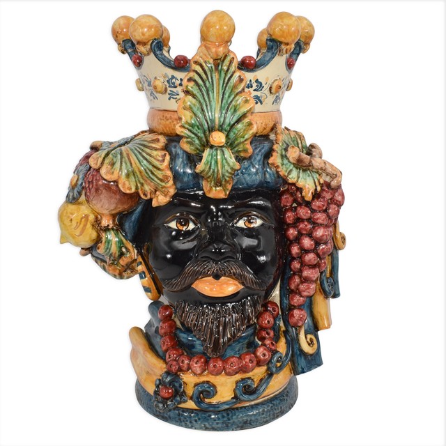 Testa h 50 c/turbante c/frutta blu/arancio/rosso maschio moro