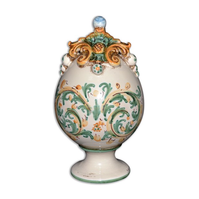 I nostri prodotti vengono realizzati interamente a mano ed eventuali imperfezioni denotano l'originalità dell'opera. La creazione delle nostre ceramiche è un processo molto laborioso che segue diverse fasi; tra queste la modellazione, la prima cottura, la decorazione la seconda cottura e l'invecchiamento. La caratteristica principale di acquistare un prodotto non industriale è proprio questa: possedere un prodotto unico.