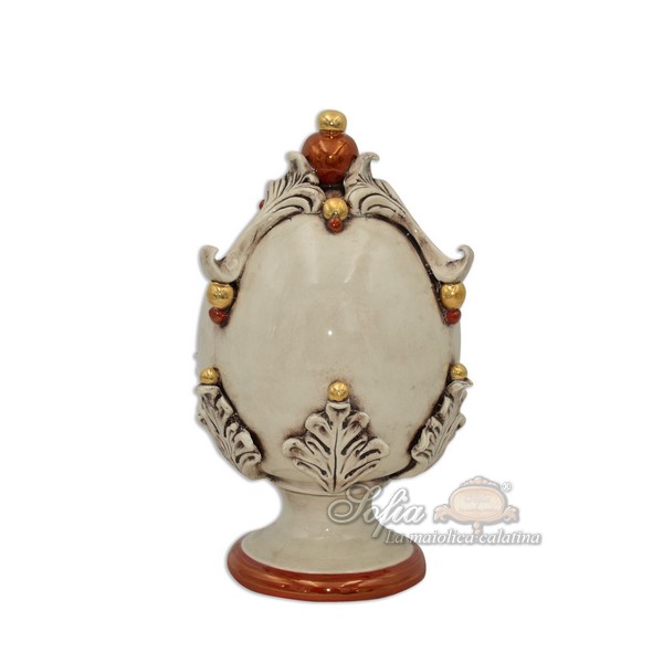 Uovo c/piede h 25 plastico sofia madreperla antichizzato oro e lustri
