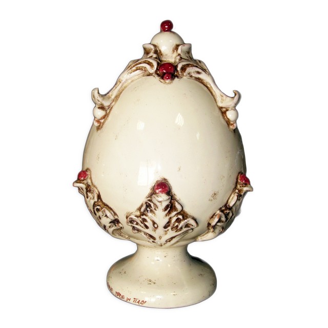 Uovo c/piede h 35 avorio/bordeaux