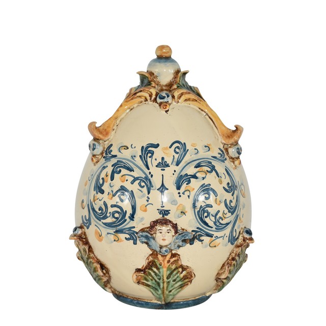 Uovo h 22 c/angelo in rilievo plastico sofia tricolore