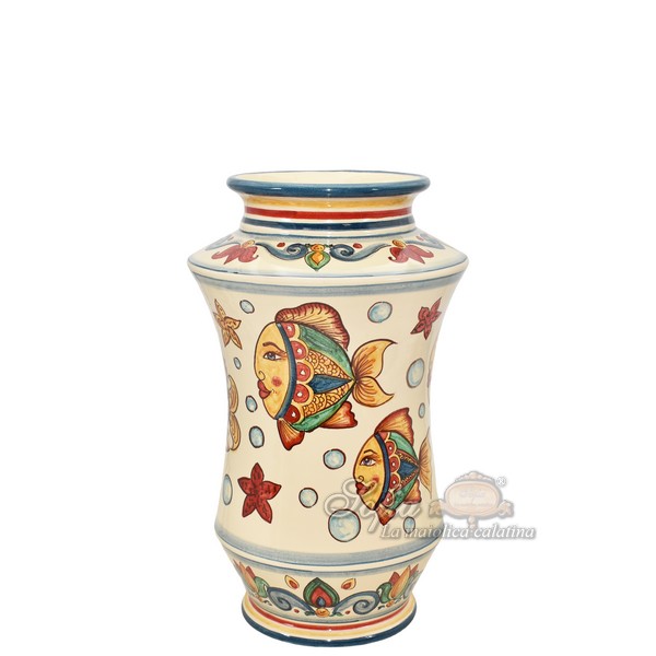 Vaso albarello h 35 decoro pesci