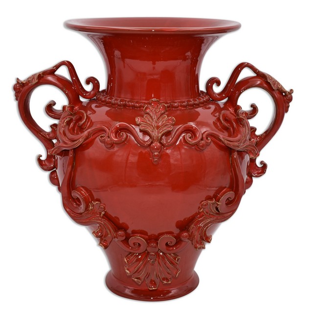 Vaso anfora h 40 c/greca rilievo rosso fuoco