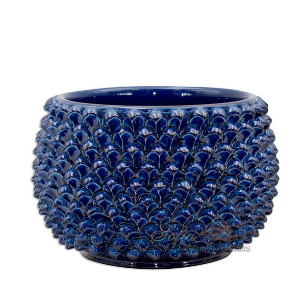 Vaso mezza pigna s/piede Ø 30 blu intenso