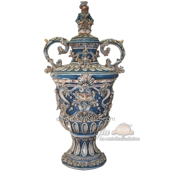 Vaso monumentale c/mascherone in serie limitata h 95 mono blu
