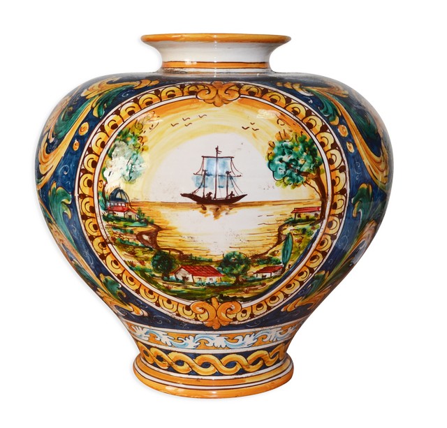 Vaso palla h 35 ornato calatino c/veliero