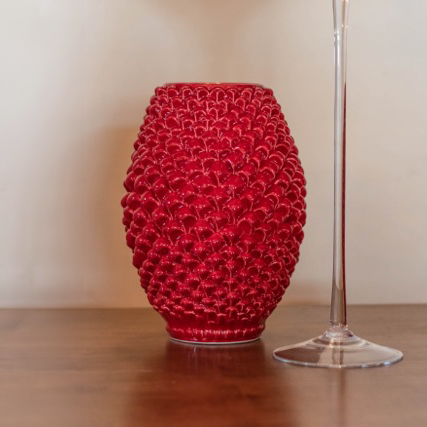 Vaso pigna botte h 25 rosso fuoco