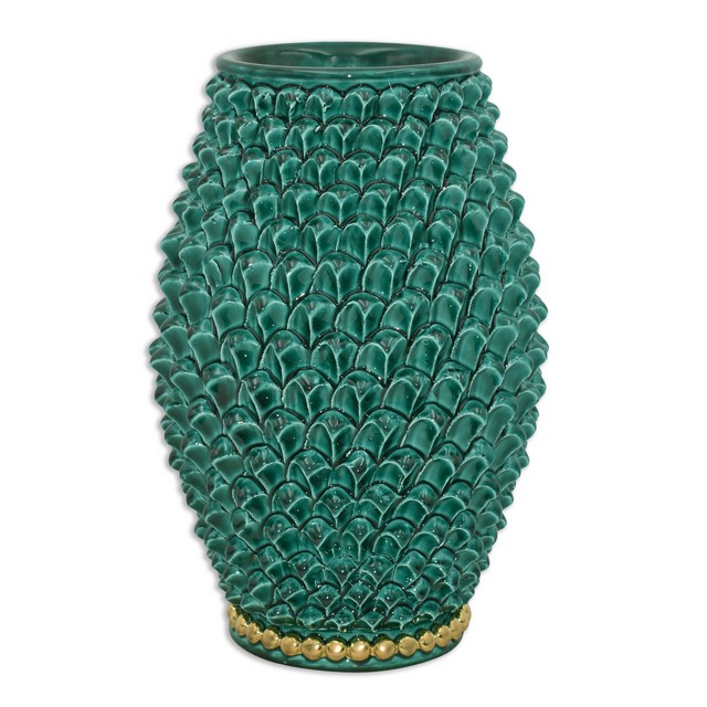 Vaso pigna botte h 25 verde rame