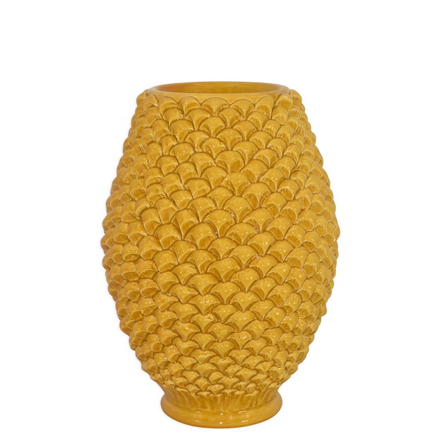 La tradizione popolare Siciliana ritiene che sia utile regalare delle pigne da appendere sopra la porta di casa come augurio di salute e buona fortuna alle famiglia che vi abita. Ma la Pigna la troviamo anche su balconi e cancelli di ingresso di antiche ville e giardini nobiliari, cimiteri monumentali, facciate di chiese e conventi, fino a popolare i troni di re e pontefici come materializzazione dell’anima, il ponte che unisce il terreno al divino. Questi significati si materializzano tra le mani di abili artigiani della ceramica che realizzano pigne di grandi e piccole dimensioni. Oggi le Pigne Artistiche, usate come bomboniere, regalo di nozze, complementi di arredo per interni ed esterni o come come base lampada, restano un modo esclusivo di esprimere un profondo augurio di benessere.
