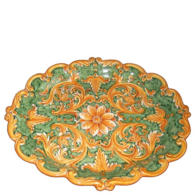 Vassoio riccioli 33×30 ornato fondo verde